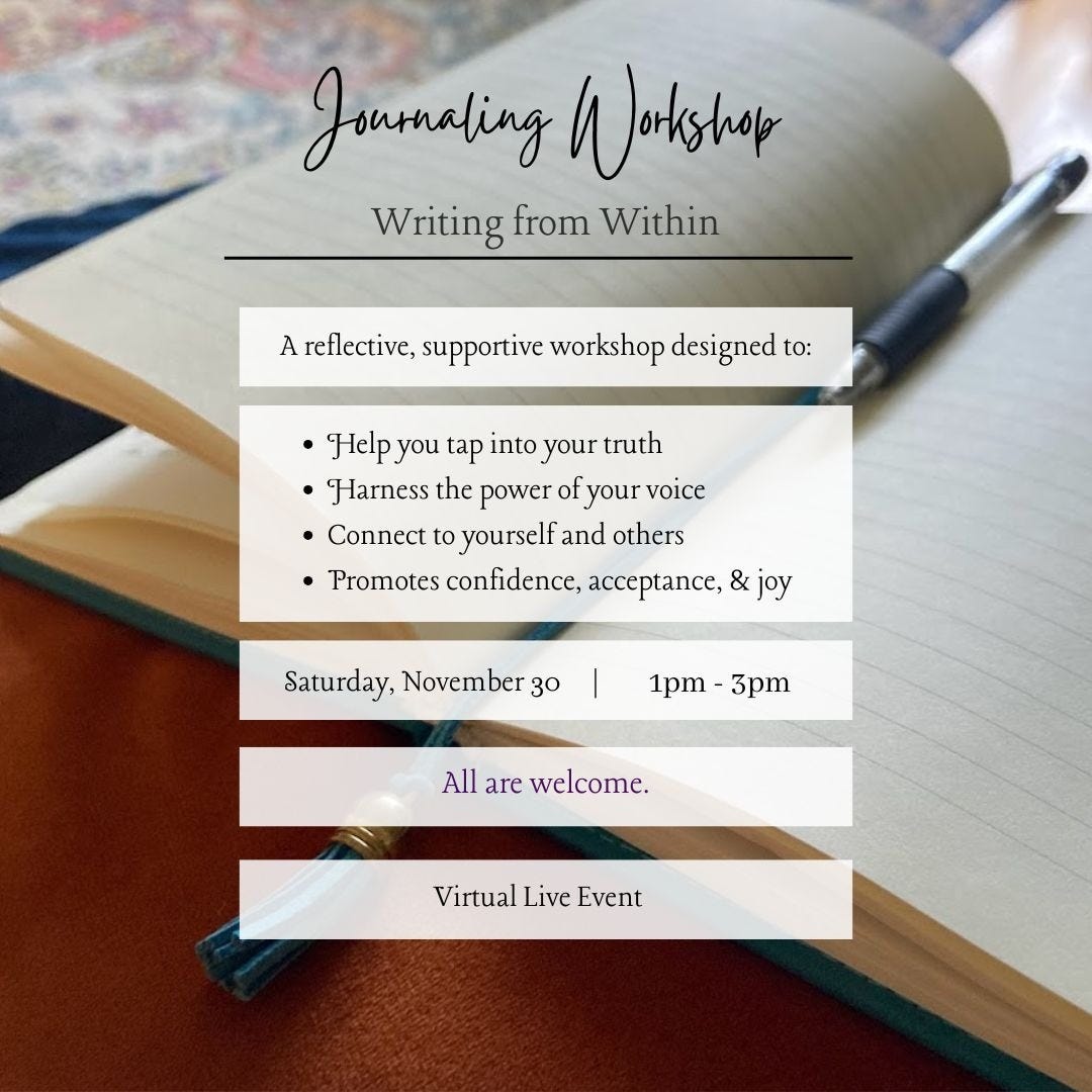 upcoming journaling workshop: Writing From Within